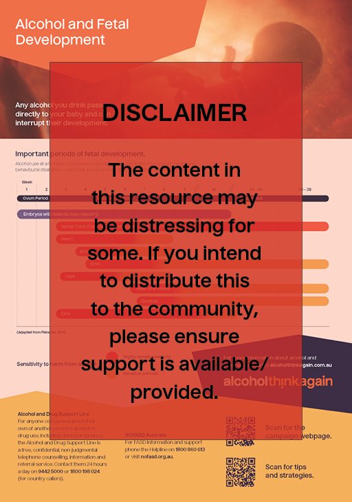 The entire campaign development process was also guided by an Expert Reference Group, which included experts from organisations such as Cancer Council WA, WA Department of Health, No FASD Australia, Royal Australian College of General Practitioners, Kids Research Institute Australia, WA Country Health Service, and Curtin Medical School.